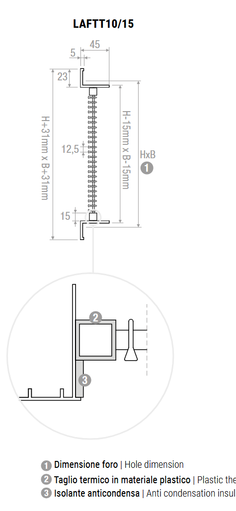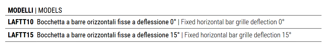 Bocchette ad alette fisse con deflessione 0° o 15° e isolamento termi-