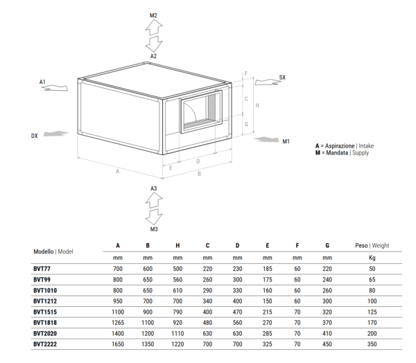 | Modello | Potenza motore | Motore ad 1 velocità | Motore 4/6 poli |
