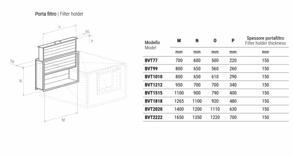 | Modello | Tettuccio parapioggia | Cuffia con rete antivolatile | Piedini di appoggio | Portafiltro | Filtro sintetico | Filtro metallico |
