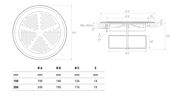 griglie pedonabili a barre fisse orizzontali passo 12,5 mm per pavimenti galleggianti.