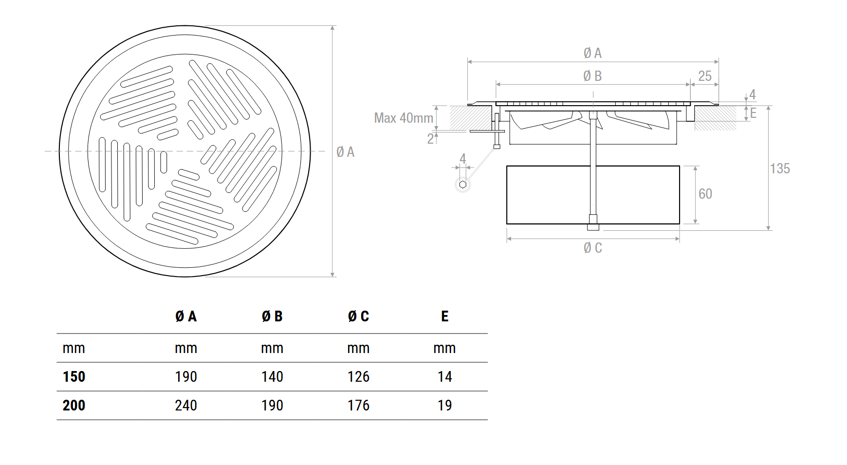 • Controtelaio di montaggio in lamiera di acciaio zincata o alluminio anodizzato