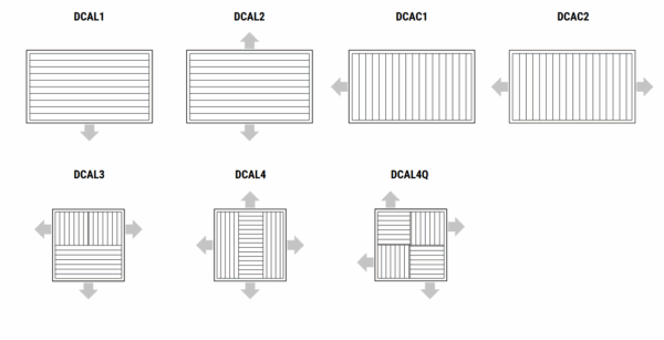 diffusori ad alette curve ad 1, 2, 3 o 4 direzioni di lancio.