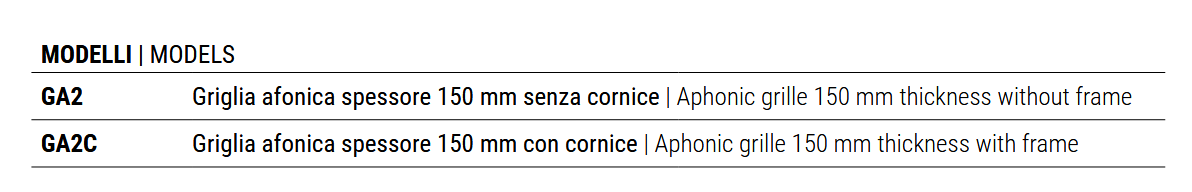 griglie afoniche per utilizzo singolo o accoppiato.
