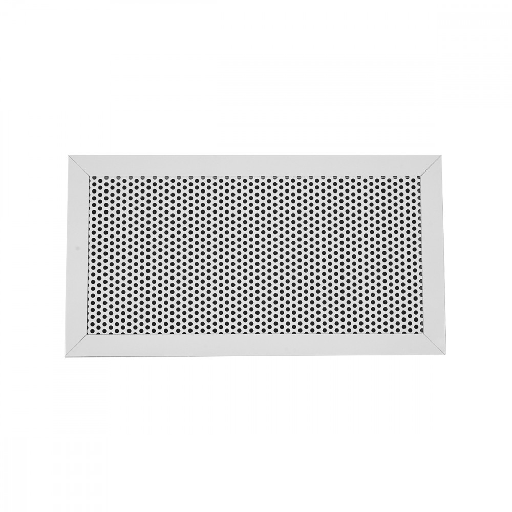telaio in alluminio verniciato bianco RAL 9016 opaco. Schermo in lamiera