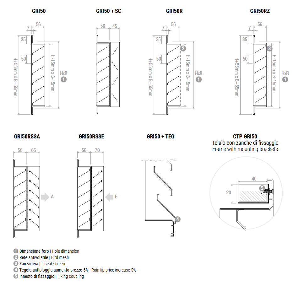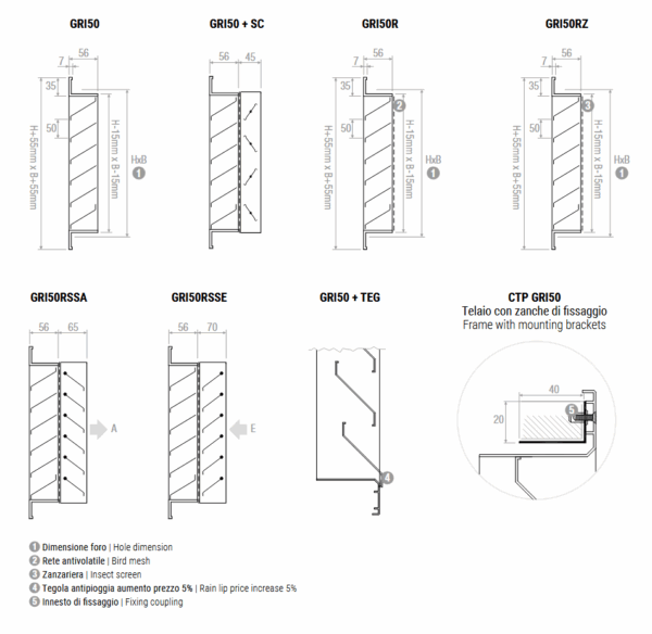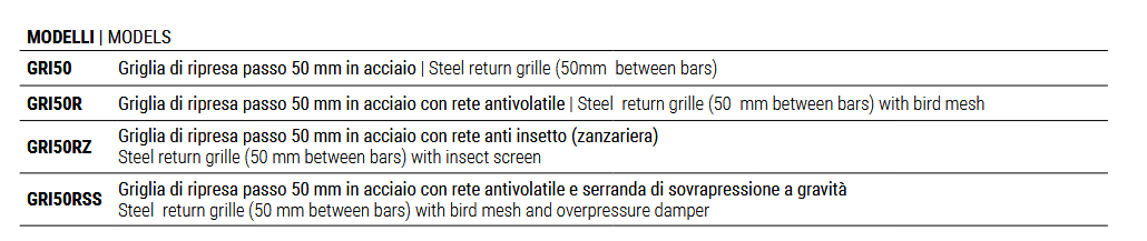 | BxH [mm] | GRI50 | GRI50R | GRI50RZ | GRI50RSS |