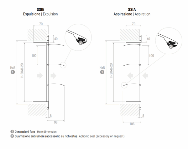 Griglia di sovrpressione-espulsione passo 100mm da parete