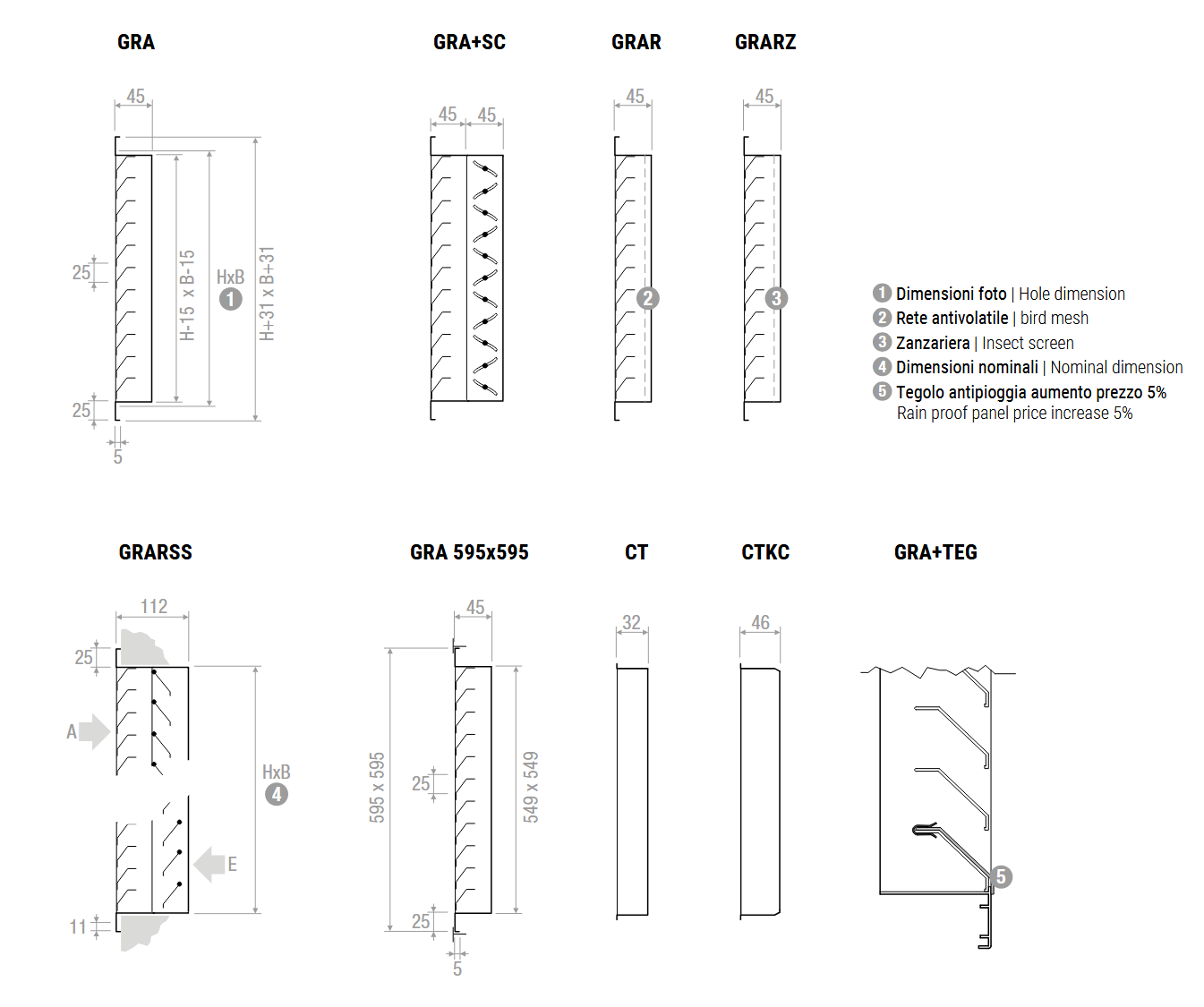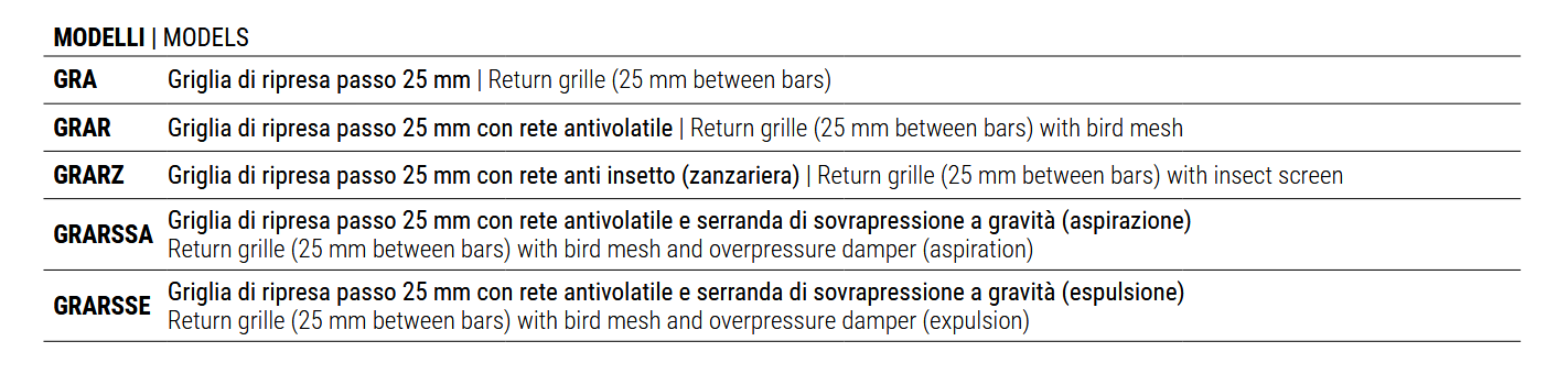 | BxH [mm] | GRA | GRAR | GRAZ | GRARSS |