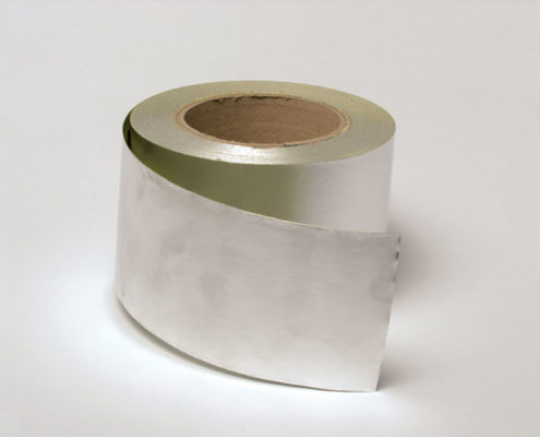 Nastro in alluminio autoadesivo utilizzato nella costruzione delle condotte. Il nastro viene fornito in rotoli da 50 metri e in confezioni da 4 rotoli.