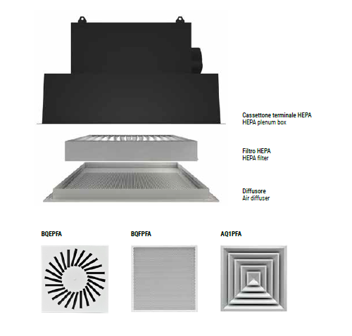 Impiego: a soffitto in ambienti a contaminazione controllata.