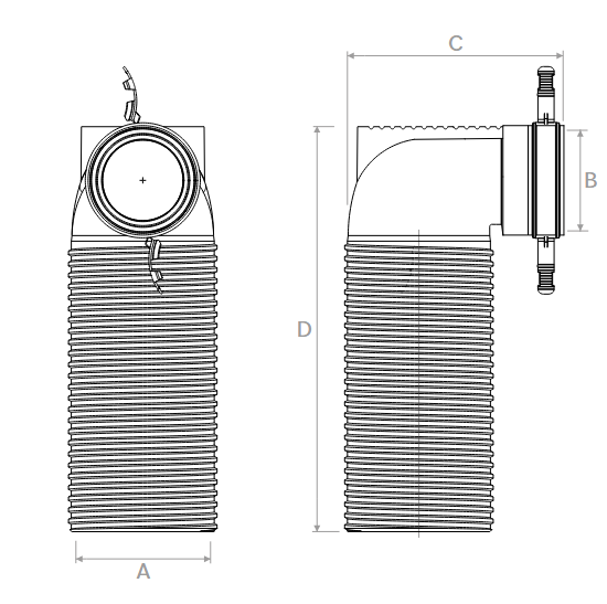 Raccordo valvola 125 92 90° in plastica.