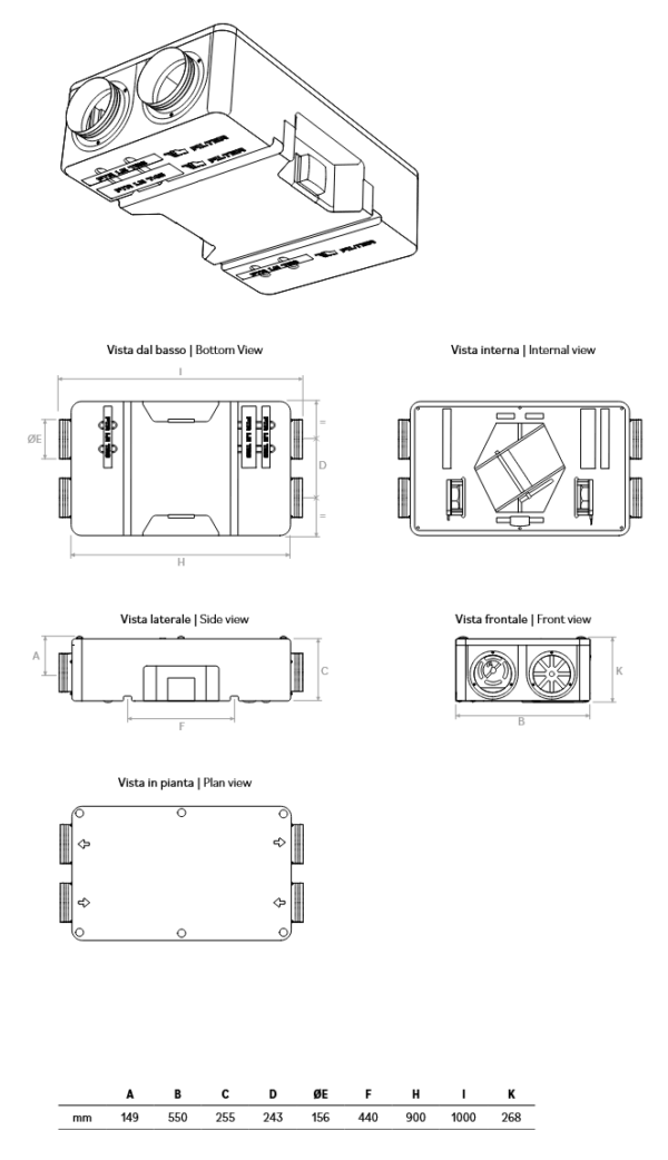 classe G4, in opzione filtro efficienza F7 su aria esterna.