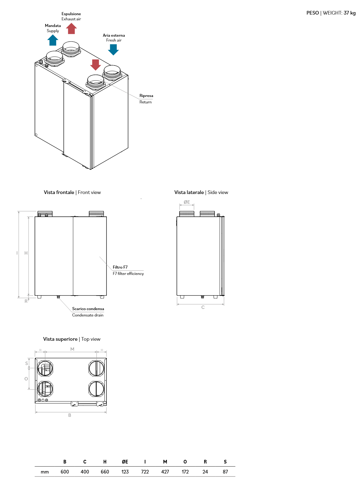 classe G4, in opzione filtro efficienza F7 su aria esterna.